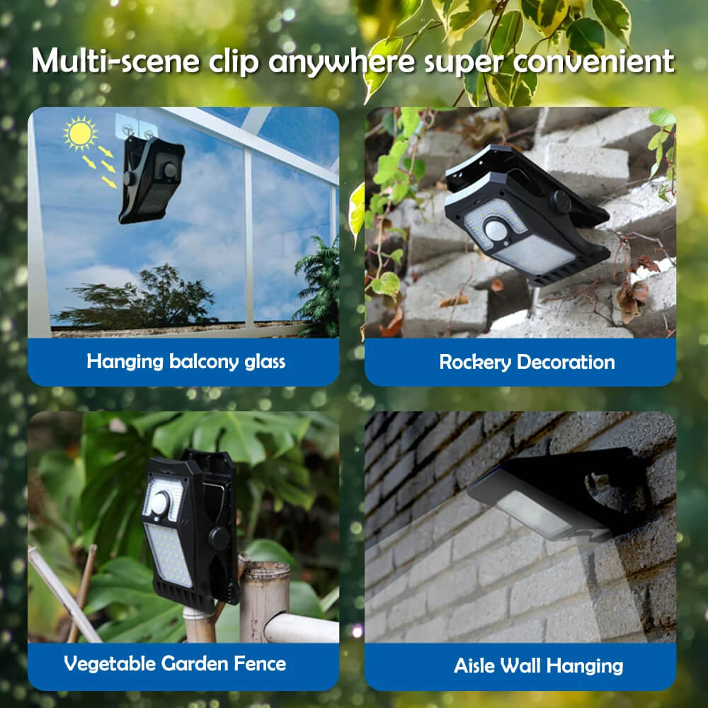 【Solar Motion Lights Outdoor】Harness the power of the sun with this LED clip light, eliminating the need for external power sources while reducing energy costs and promoting eco-friendliness.